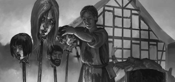 schon reitend auf einer mit Blut beschmierten